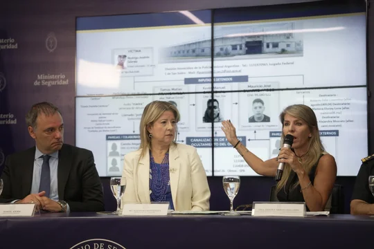 Acompañada por el jefe de Gabinete, Manuel Adorni, y la jueza federal Sandra Arroyo Salgado, Monteoliva sostuvo que los implicados se contactaron con la víctima a través de una app de citas con un perfil falso denominado “Julieta Ayelén Cardozo”.